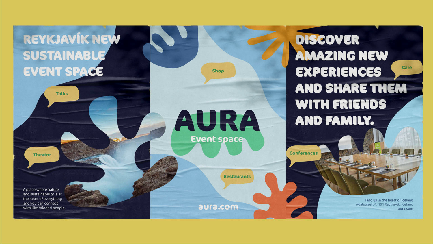 To design a corporate event space in Reykjavik, Iceland for a broad demographic inspired by the city and country with different spaces, such as; conference rooms, theatres and cafe's.